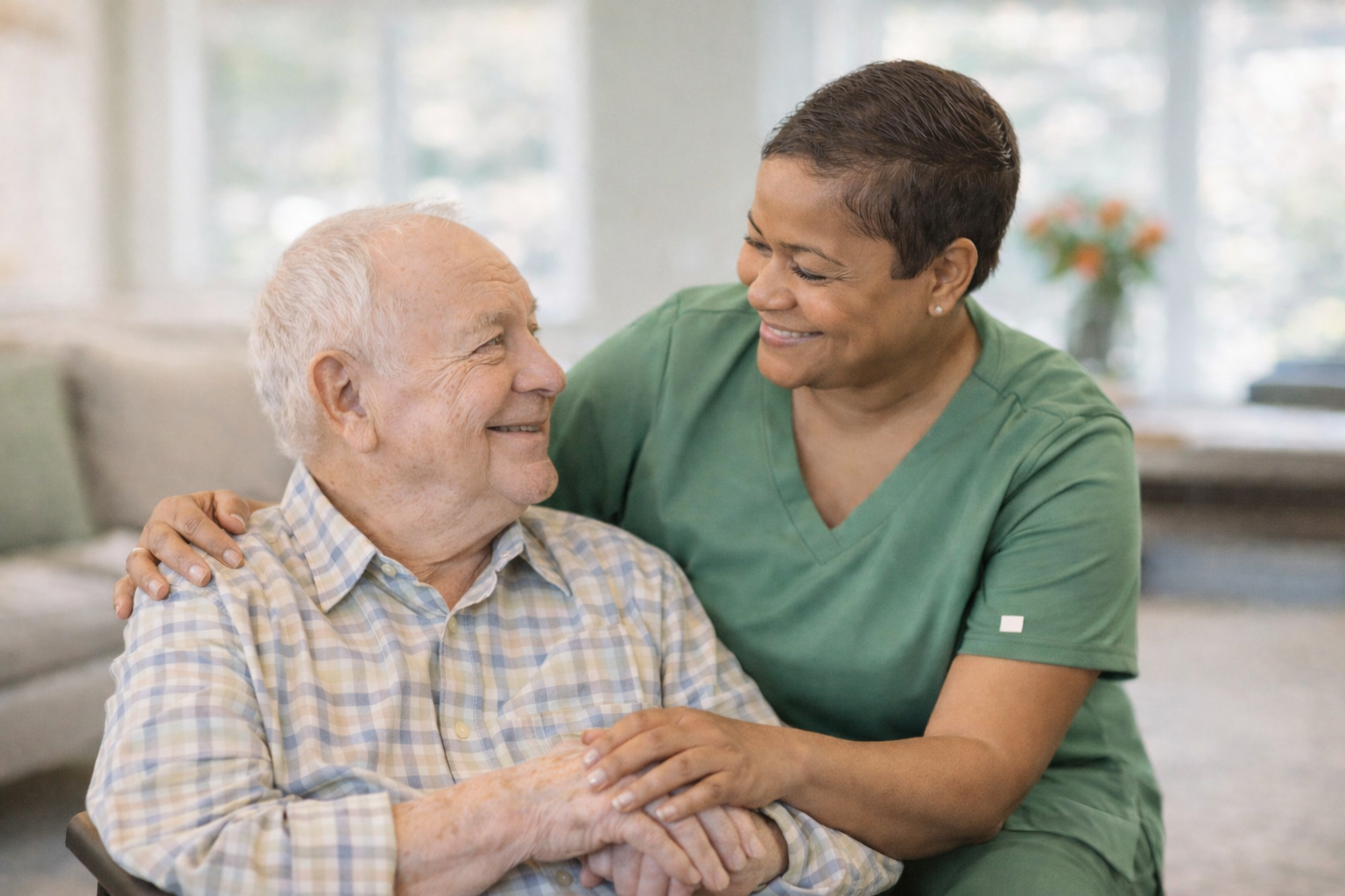 Trained, carefully screened caregivers provide round-the-clock care with patience, dignity, and respect.
